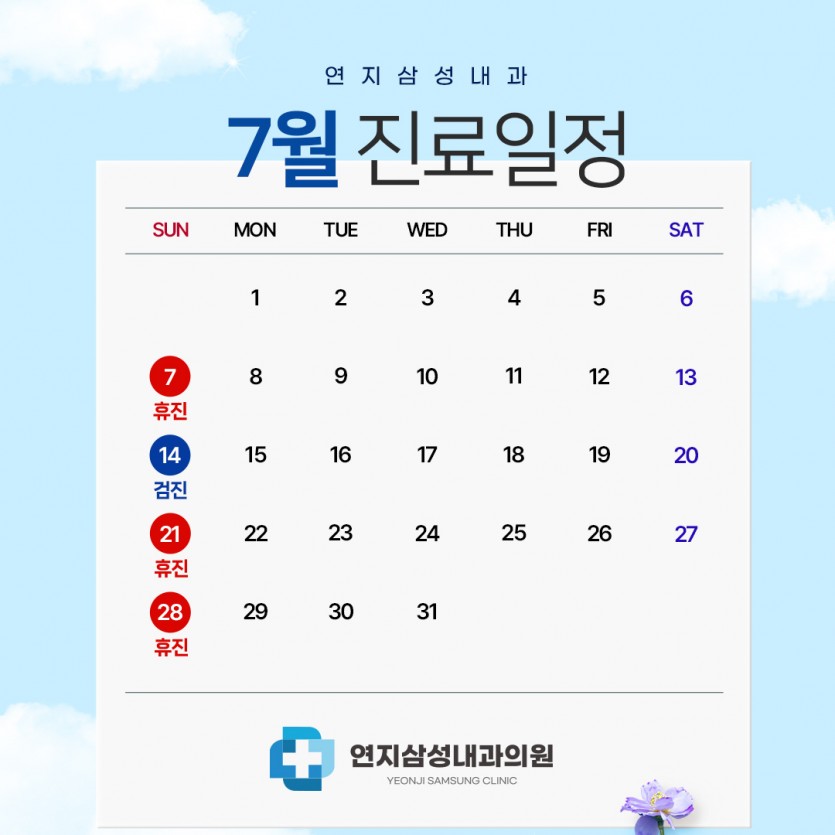7월 진료일정 안내드립니다. 페이지 정보 작성자 관리자 댓글 0건 조회 707회 작성일 24-06-27 21:31 목록 본문 위 일정 참고하시어 진료 및 예약에 불편없으시길 바랍니다:) 감사합니다. 이전글8월 진료일정 안내드립니다. 24.07.30 다음글6월 진료일정 안내드립니다. 24.05.30 댓글 0 댓글목록 등록된 댓글이 없습니다.