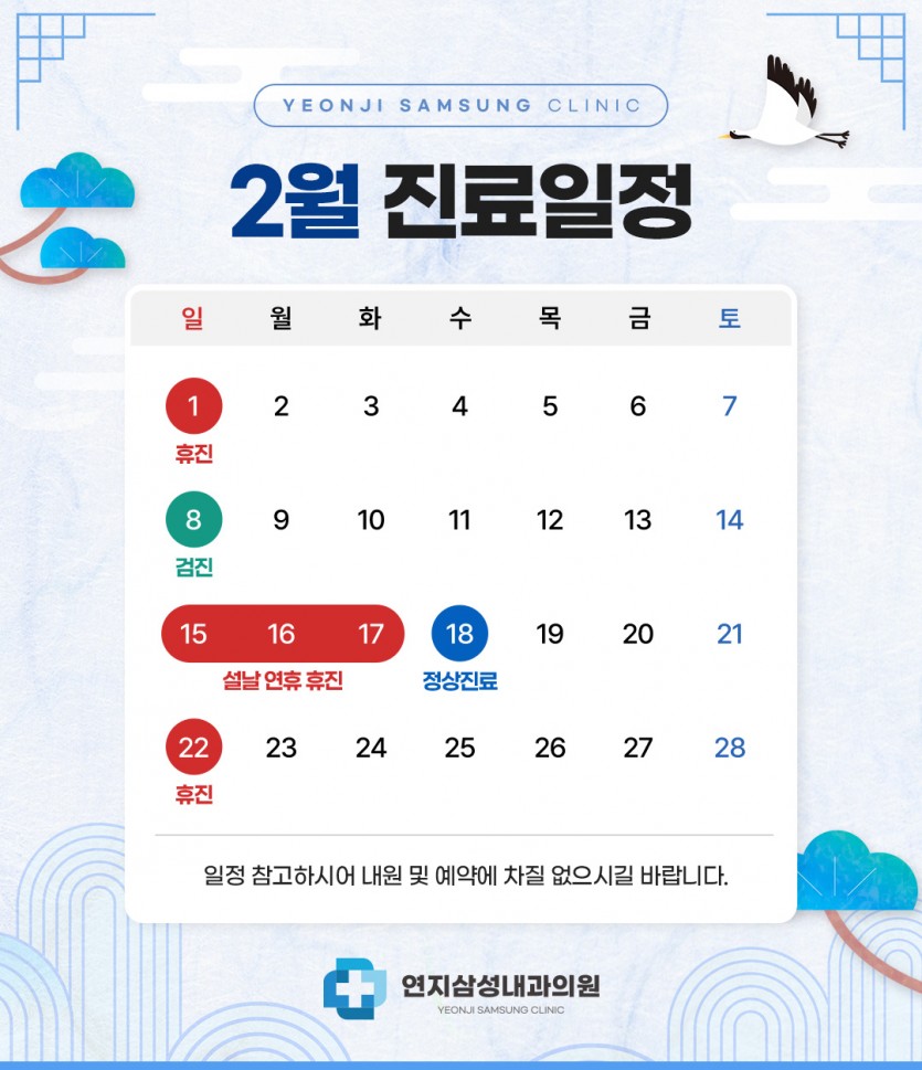2월 진료일정 안내드립니다.